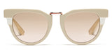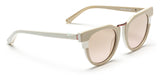 Memories of Palm Beach's Seaspray: Seaspray 3.1 is a polished translucent sand acetate frame that features a white acetate accent and temples. It also features a polished bronzed rose metal nose bridge. The bronzed lavender gradient mirrored lenses and white opal signature side inlay finish this sophisticated frame.