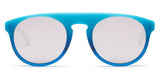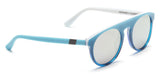 Shark Attack: Atlas 24 features limited edition shark attack acetate. Beautiful polished layered acetate features a blue outside and white inside combined silver mirrored lenses for a striking look. Black matte metal inlays at the temple complete this fun frame.