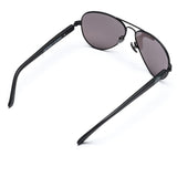 All black everything: Concorde 24 features black matte metal frame with black matte acetate temples and hypoallergenic black ceramic nose pads. Lenses are standard grey in color, and available with or without polarization. Camo granite side inlays complete this classic style.