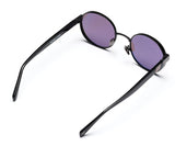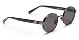 All black everything: Eclipse 01 features extra black lenses (darker in appearance than standard gray lenses) in a matte black metal hood with a hand-polished tungsten rim. Polished black acetate temples are inlaid with pewter saffiano leather. Lenses feature backside anti-reflective coating and nose pads are hypoallergenic.