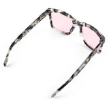 Pretty in Pink: Big TV 09 features a pink tinted lens. The frame is matte pepper tortoise acetate, and pink mirrored side inlays complete this classic look.