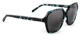 Extra! Extra!: Claremont 02 features a polished aquamarine tortoise acetate frame and extra dark lenses with polished onyx side inlays to complete the look.