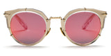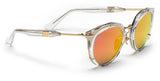Crystal and gold: Sphinx 04 features red mirrored lenses in a crystal translucent acetate frame wrapped with polished gold metal. Polished gold side inlays complete this rich look.