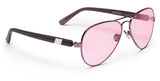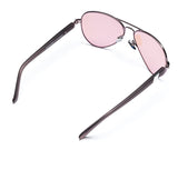 On Wednesday's we wear pink: Concorde 28 features pink tinted lenses in a polished gunmetal wire frame with matte slate acetate temples. The silver ceramic nose pads are hypoallergenic and super silver side inlays complete the look.
