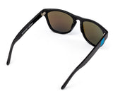Color Revolution: Big Pioneer 02 features blue mirrored lenses in a polished black acetate frame. Blue mirrored side inlays ensure you’ll always shine brightly.