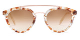 Toast to Quartz: Double Bridge 08 features brown gradient lenses. Our new quartz tortoise acetate combines with polished bright rose gold metal for a super-elegant look. California redwood inlays at the temple finish off this elegant frame.