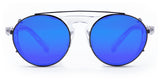 Deep blue sea: Dyad 11 features a unique clip with deep blue mirrored lenses in matte black wire. The frame is crystal acetate, hand-polished to a perfect finish. Slate aluminum side inlays complete the classic look. The frame itself features clear lenses, and is RX friendly, should you wish to add your prescription. Additional clips are available in our accessories section.