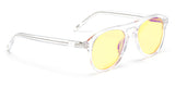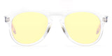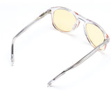 Crystal clear: Galileo 20 features a polished crystal translucent acetate frame. Yellow tinted with purple flash lenses and super silver side inlays complete the look.