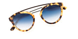 Dreaming of the Beach: Flower 38 features navy gradient lenses. Beautiful matte sand tortoise acetate combines with matte black metal for a super-elegant look. It also features onyx inlays that completes the look.
