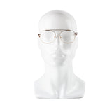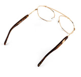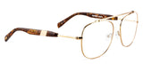 Go for gold: Malcolm Optical 04 features a wire frame in polished gold metal and temples that are polished burl acetate. The comfortable and clear nose pads are hypoallergenic. Super gold side inlays complete this timeless style.