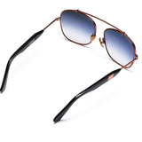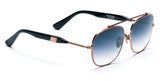 In the navy: Malcolm No Middle 07 features navy gradient tinted lenses. The wire frame is a polished rose gold and temples are matte black acetate. The bronze ceramic nose pads are hypoallergenic, and polished rose gold metal side inlays complete the luxe look.