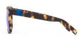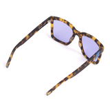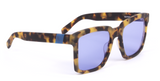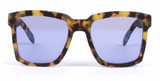 Bold Blue: Big TV 01 features navy tinted lenses. The frame is matte sand tortoise acetate, and our striking cerulean sea glass side inlays complete the look.