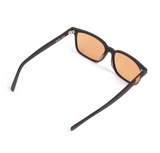 Marble-lous: Valencia 07 features a matte black acetate frame and orange tinted lenses with reclaimed Planetree wood side inlays to complete the look.