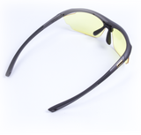 Color-enhancing lenses: Volt 10 features super high-performance lenses in a yellow tint. This unique tint is specially formulated for sports and activities and helps increase contrast (between the ball and the court, for example). The frame is finished in cool matte frost with matte black rubber temples. Polished black metal side inlays complete this winning look.