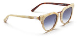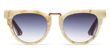 Memories of Palm Beach's Seaspray: Seaspray 2.1 is a polished ivory marble acetate frame that features a tortoise acetate interior. It also features a polished rose gold metal nose bridge. The navy gradient tinted lenses and frosted pink glass signature side inlay finish this sophisticated frame.