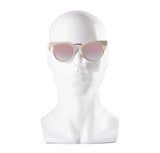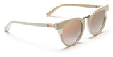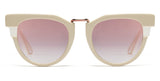Memories of Palm Beach's Seaspray: Seaspray 04 is a polished translucent sand acetate frame that features a white acetate accent and temples. It also features a polished bronzed rose metal nose bridge. The rose gold gradient mirrored lenses and pink mussel signature side inlay finish this sophisticated frame.