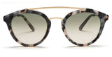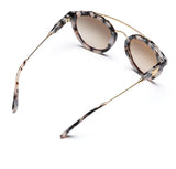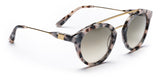 Snow Leopard: Double Bridge 01 features sage gradient tinted lenses. Beautiful polished snow leopard acetate combines with polished gold metal for a super-elegant look. Super gold polished metal inlays at the temple ensure you’ll always shine brightly.
