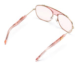 Pink & Champagne: Malcolm in the Middle 02 features trend-forward pink tinted lenses. The wire frame is a unique matte champagne color (more delicate and sophisticated than traditional gold or silver). The temples and “middle” accent are pretty in pink (polished translucent acetate, this is), and polished super gold metal inlays complete the look.
