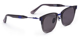 Smoke and mirrors: Mirrorcake 05 features extra black mirrored lenses over a polished blue frame. Temples are hand-polished slate acetate. The black ceramic nose pads are hypoallergenic, and matte blue metal side inlays complete the look.