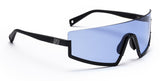 Ultra-marine: Stun 01 features a marine blue tinted lens in a matte black metal frame. Temple tips and nose pads are matte black rubber. Genuine carbon fiber side inlays complete the futuristic look.