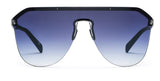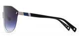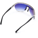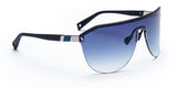 In the navy: Vibe 03 style features our navy gradient tint lens in matte silver metal frame with temple tips and nose pads in matte black rubber. Perforated navy leather side inlays complete this elevated and sporty look.