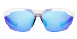 Ocean Blues: Volt 08 features super high-performance lenses in a neon blue mirror. The frame is finished in cool matte frost with matte black rubber temples. Polished black metal side inlays complete this winning look.