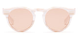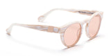 Don't make me blush: Voyager 35 features a hand-polished white marble acetate frame. Blush tinted lenses and blush lizard leather side inlays complete the look.