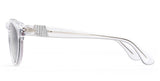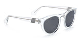 Crystal Clear: Voyager 38 features a hand-polished crystal acetate frame. Grey tinted lenses (available with or without polarization) and silver leather side inlays complete the look.