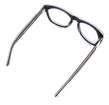 Layer it on: Pioneer Optical 11 features our super-popular layered tortoise acetate in a matte finish. The outside of the glasses is a classic tortoise color, while the inside is a translucent deep blue. An ivory middle layer adds a graphic pop to the rim of the glasses. Faux ivory side inlay complete the look.