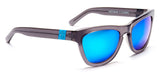 Great in slate: Pioneer 27 features a polished slate acetate frame with neon blue mirrored lenses. Polished turquoise inlays complete this cool blue look.