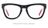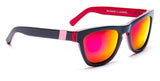 Fluorescent & effervescent: Pioneer 29 a fluorescent pink layered acetate frame. The outside is polished black, but the inside is bold translucent pink. Extra-bright neon pink lenses and pink mirrored inlays ensure you’ll always shine brightly.