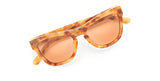 Retro Vibes: Pioneer 54 features a fun retro look with sienna tinted lenses in a polished blonde tortoise acetate frame. Super Gold side inlays complete this fun look.