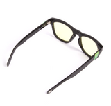 High Contrast: Pioneer 60 features a polished black acetate frame with our bold yellow tinted lenses. Leaf Green Marble side inlays complete this striking style.