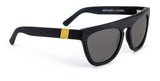 Futurism: Pioneer Flat-Top 01 features standard grey G15 lenses in a matte black acetate frame. Brass side inlays complete your sophisticated look.