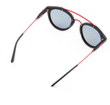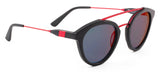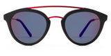 Ultraviolet vibes: Double Bridge 09 features ultraviolet lenses in a matte black acetate frame with matte red metal bridge. and matte red side inlays.