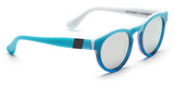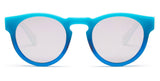 Shark Attack: Voyager 23 features limited edition shark attack acetate. Beautiful polished layered acetate features a blue outside and white inside combined silver mirrored lenses for a striking look. Black matte metal inlays at the temple complete this fun frame.