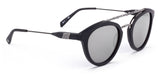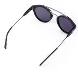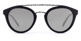 Bejeweled Brow Bar: Double Bridge 07 features muted silver mirrored lenses and matte black acetate. The frame is accented by a bejeweled brow bar and a crystal bejeweled ruthenium signature side inlay by Alexis Bittar.