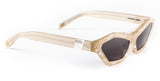 Champagne Toast: Solitaire 05 features grey tinted lenses, available with or without polarization. The frame is our new hand-polished champagne shimmer acetate, and our mother of pearl inlays complete this look.