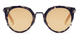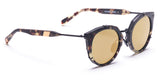 Tokyo drift: Sphinx 10 features super gold mirrored lenses in a Tokyo tortoise acetate frame wrapped with matte black metal. Polished gold side inlays complete this rich look.