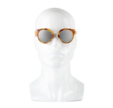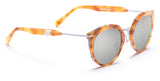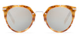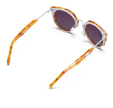 Blonde's Have More Fun: Sphinx 12 features super silver mirrored lenses in a blonde tortoise acetate frame wrapped with matte white metal. Faux ivory side inlays complete this rich look.