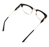Black and gold: Vanguard Optical 03 features a polished gold wire frame with matte black acetate temples and hypoallergenic clear nose pads. Super gold side inlays complete the look.
