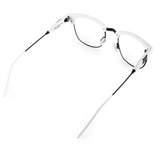 Black and white: Vanguard Optical 08 features a matte black wire frame with polished white acetate temples and hypoallergenic clear nose pads. Black marble inlays complete the look.