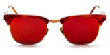 California Redwood: Vanguard 10 features a polished rose gold wire frame with polished amber acetate temples and hypoallergenic bronze ceramic nose pads. Lenses are red mirrored, while reclaimed redwood side inlays complete the look.