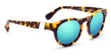 Cyan and Sand: Voyager 16 features our popular sand tortoise acetate in a matte finish. Cyan mirrored lenses and super silver side inlays complete the look.