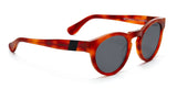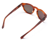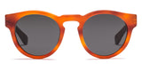 Love and leather: Voyager 39 features a matte amber acetate frame. Grey lenses (choose between standard or polarized) and black leather side inlays complete the look.