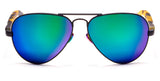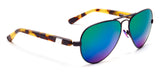 Spectrum: Concorde 12 features cyan mirrored lenses in a matte black wire frame with sand tortoise acetate temples. The spectrum ceramic nose pads are hypoallergenic and super silver side inlays complete the look.
