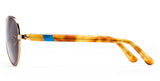 Polished Turquoise: Concorde 25 features a polished gold wire frame with blonde tortoise acetate temples and hypoallergenic gold ceramic nose pads. Lenses are standard grey in color and are available with or without polarization. Polished turquoise side inlays complete the look.