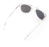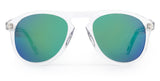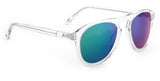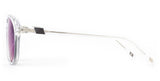Crystal clear: Galileo 23 features a polished crystal translucent acetate frame. Neon cyan mirrored lenses and super silver side inlays complete the look.