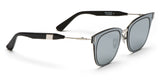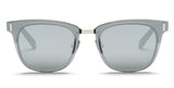 Smoke and mirrors: Mirrorcake 02 features muted silver mirrored lenses over a polished silver frame. Temples are hand-polished black acetate. The silver ceramic nose pads are hypoallergenic, and polished silver side inlays complete the look.