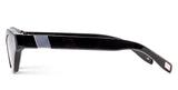 Black out: Solitaire 01 features grey tinted lenses, available with or without polarization. The frame is hand-polished black acetate, and our super silver inlays complete this look.